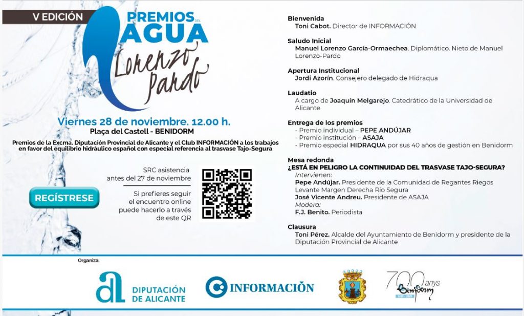 Premios V EDICIÓN PREMIOS DEL AGUA LORENZO PARDO La Excma. Diputación…Graziella Lanzini28 noviembre, 2025 - 12:00